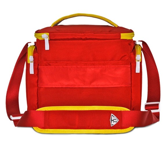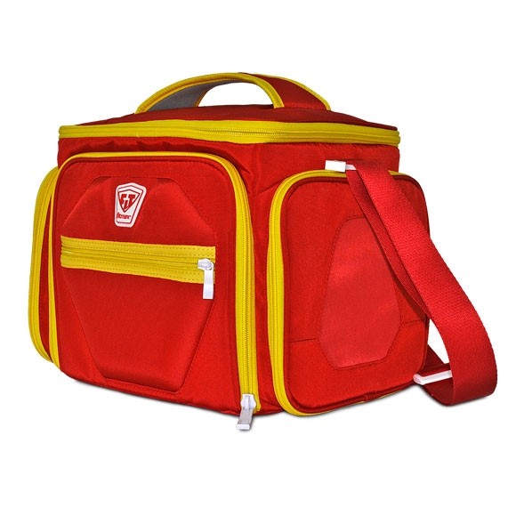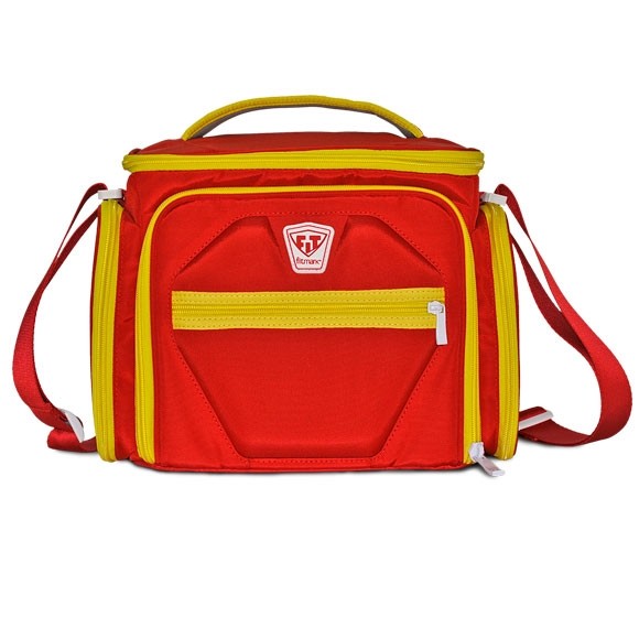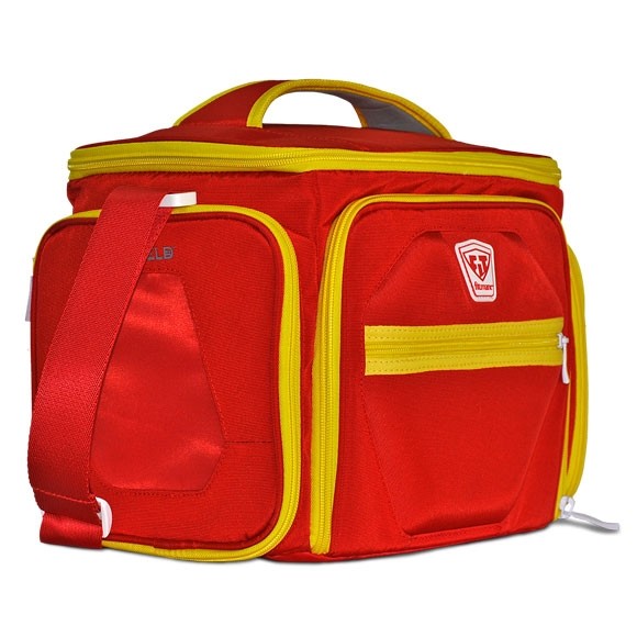 Sweet design. Highest quality materials. Innovative function. The Shield is taking meal management bags to the next level. It’s lightweight, portable, with tough polyester nylon and a heavy-duty, padded and removable shoulder strap. Easily organize your meals with 3 large seal-tight containers, two cool packs (one that is TSA approved), a custom vitamin and protein mix dispenser, and two super smart expandable exterior pockets for your water bottle, protein bars and fruit. There's even a place to hang your keys. The back exterior includes a luggage connector and sleeve for your journal and magazine. The Shield comes with the Fitmark swivel-action center divider that pivots for maximum organization. The Shield makes it simple to go to work, hit the gym and still have a healthy meal eight hours later. The ultimate health management system? It’s in the Shield.