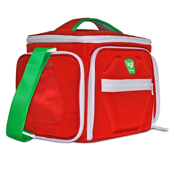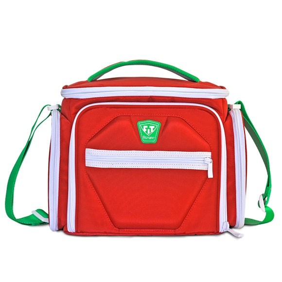 Sweet design. Highest quality materials. Innovative function. The Shield is taking meal management bags to the next level. It’s lightweight, portable, with tough polyester nylon and a heavy-duty, padded and removable shoulder strap. Easily organize your meals with 3 large seal-tight containers, two cool packs (one that is TSA approved), a custom vitamin and protein mix dispenser, and two super smart expandable exterior pockets for your water bottle, protein bars and fruit. There's even a place to hang your keys. The back exterior includes a luggage connector and sleeve for your journal and magazine. The Shield comes with the Fitmark swivel-action center divider that pivots for maximum organization. The Shield makes it simple to go to work, hit the gym and still have a healthy meal eight hours later. The ultimate health management system? It’s in the Shield.