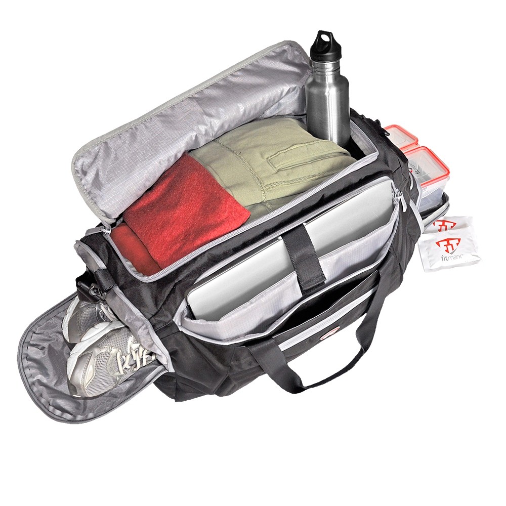 Touch and feel this bad boy and you'll know why. Enough room in the main compartment for your clothes, shoes, books, sports bottles and more (even a separate, padded laptop pocket to secure your 15" inch laptop). Plus, our patent pending, removable meal managment system that includes 2 large seal tight containers and 2 ice packs (TSA approved). Grab one of these bags, you'll love it.